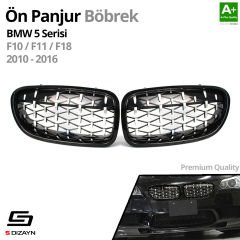 S-Dizayn Bmw 5 Serisi F10/F11/F18 Ön Panjur Böbrek Parlak Siyah Çerçeveli Krom Diamond Model 2010-2016